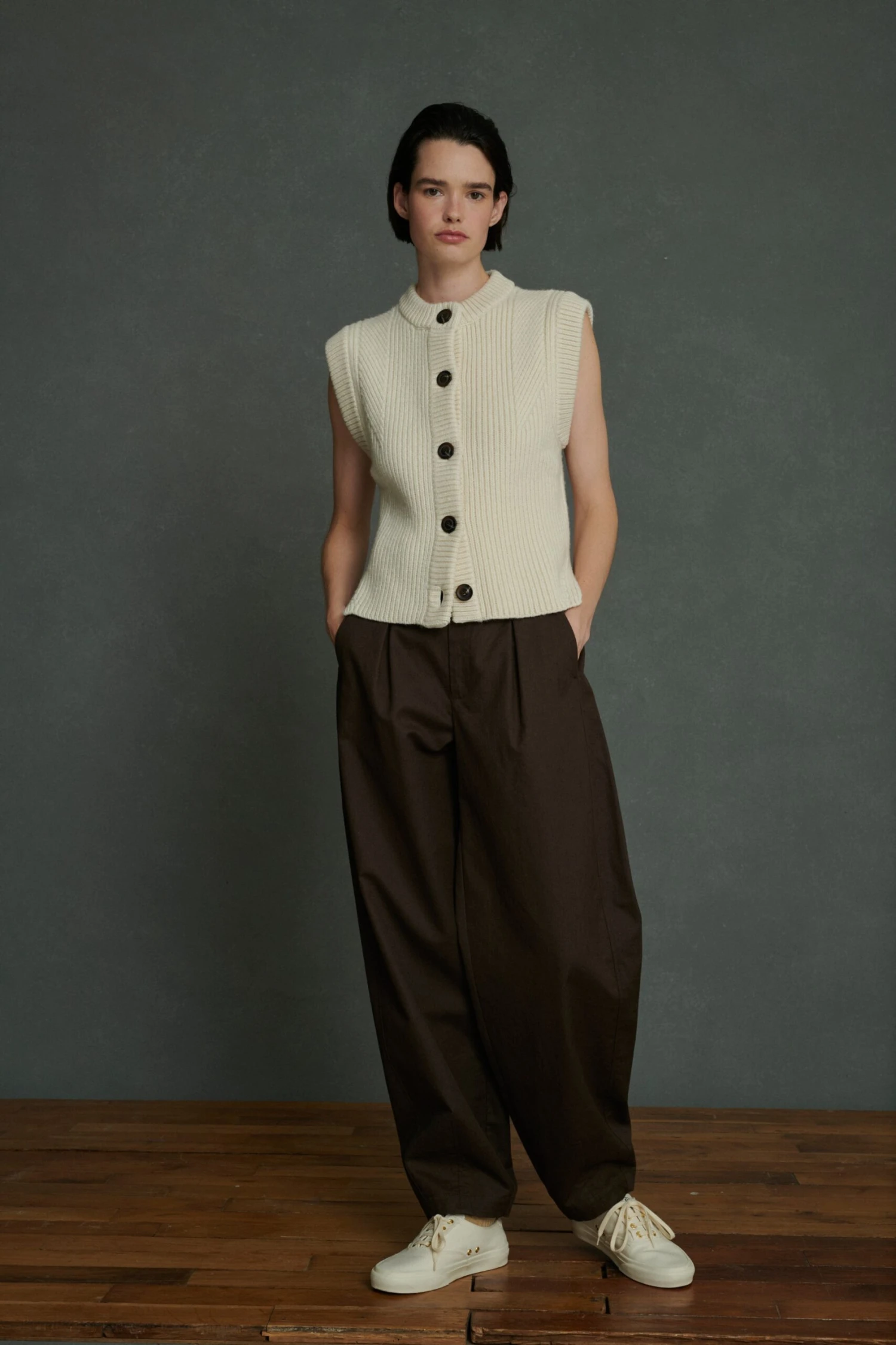 AMORE est un gilet en maille Ă©paisse Ă porter Ă mĂŞme la peau, ou comme une veste superposĂ©e Ă une chemise, une robe ou un pull fin. Les jeux de diminutions et de cĂ´tes en biais apportent relief et fantaisie en donnant l’illusion de fines torsades.