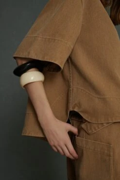 Blouse ample manches courtes en denim souple beige