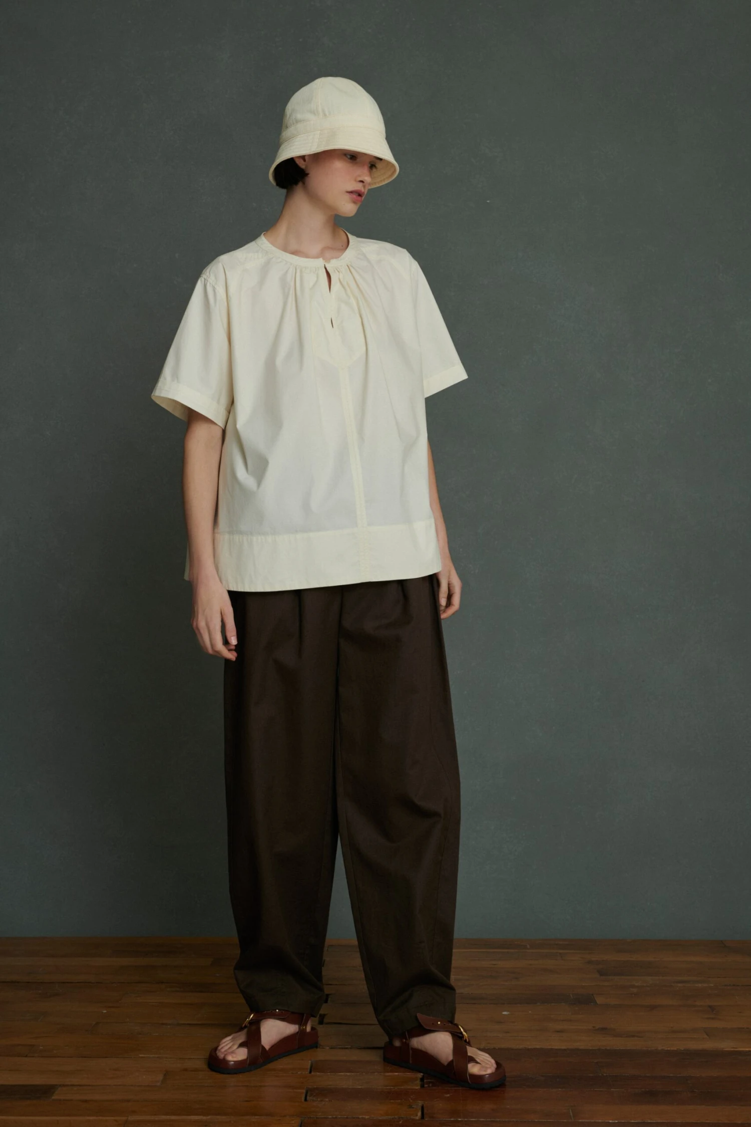 ARLETTE est une blouse ample en coton. L’encolure ronde, entiĂšrement froncĂ©e, est fendue, se portant ouverte ou boutonnĂ©e. La popeline de coton, lĂ©gĂšre et fraiche, est idĂ©ale pour l’Ă©tĂ©. Le bas de corps, les manches et le plastron sont doublĂ©s, crĂ©ant un jeu de transparence contrastĂ©.