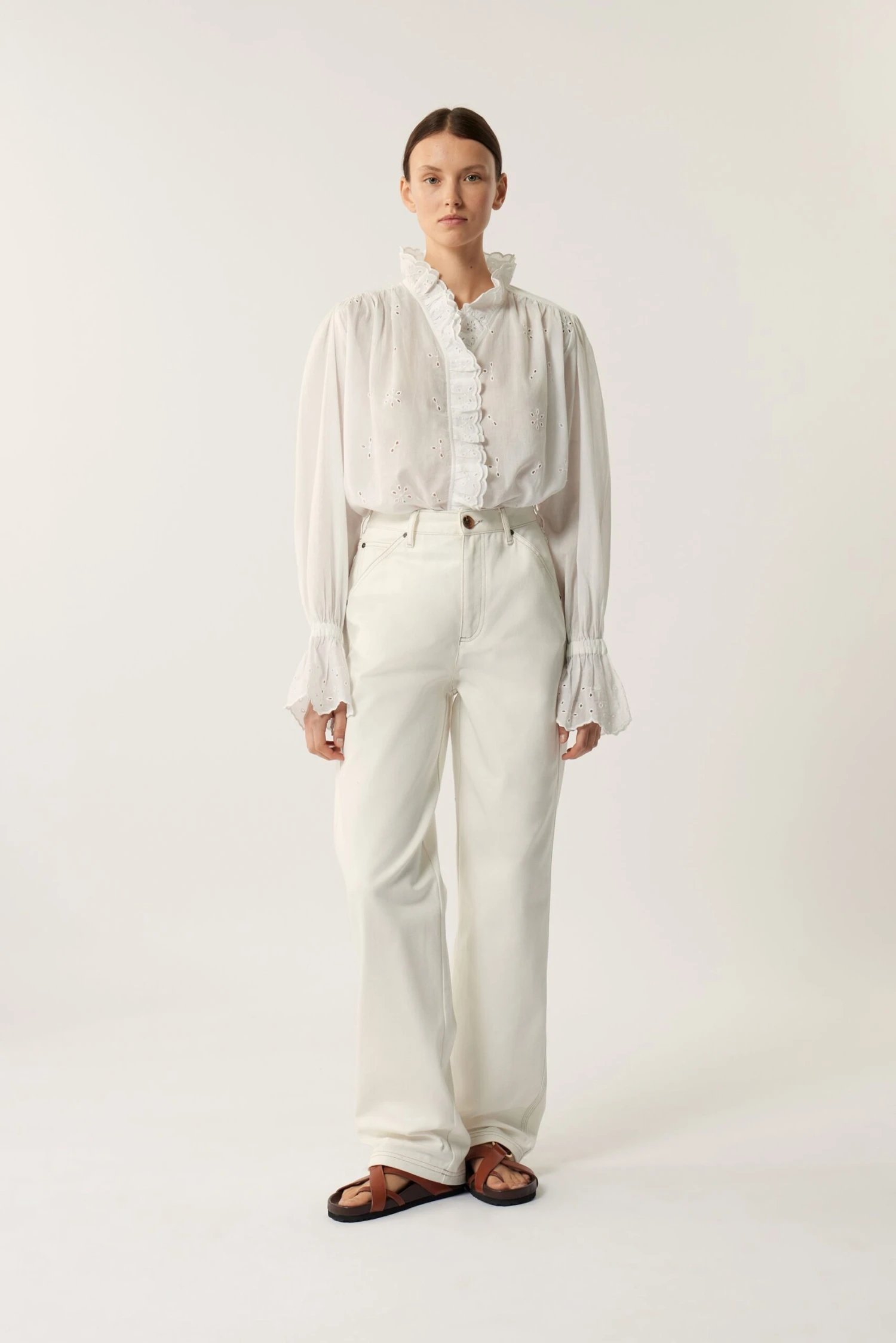 • Broderies anglaises sur le devant et les poignets