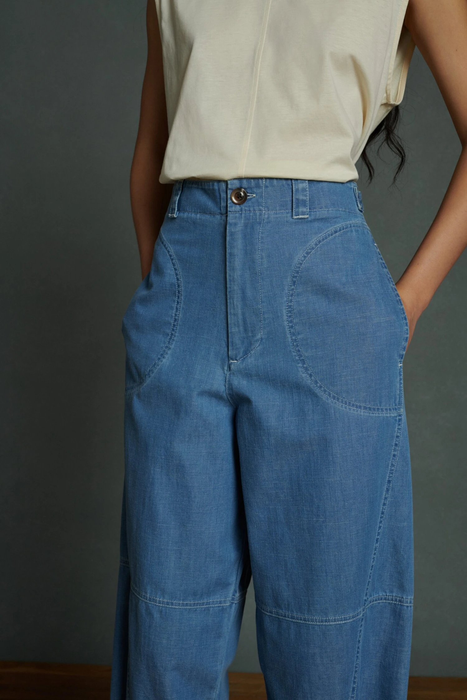 Pantalon à poches et détails surpiqués en toile de coton bleu clair