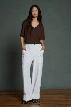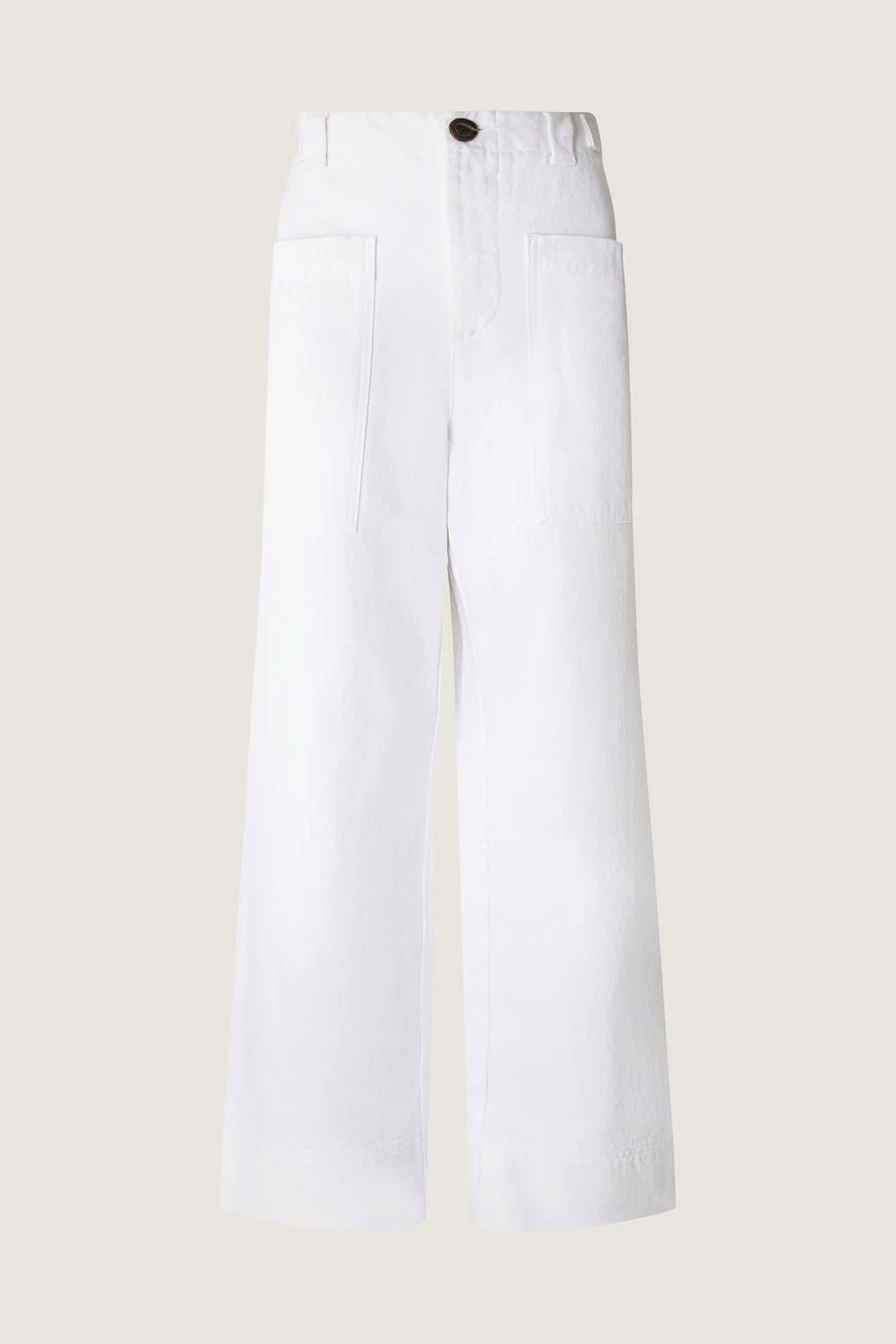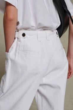 ANDORRE est un pantalon en denim épais à la coupe droite et ample « boyfriend ». Ses grandes poches à l’avant et à l’arrière rappellent les pantalons « cargo ». Une patte de boutonnage ajustable permet de le porter taille haute ou posé sur les hanches.