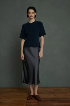 FEVER est une jupe Ă la taille Ă©lastiquĂ©e qui permet de la porter plus ou moins haute et de s’adapter Ă toutes les morphologies. Sa coupe minimaliste met en valeur le tombĂ© liquide de son Ă©toffe fluide et brillante. Une dĂ©coupe en biais la rend lĂ©gĂšrement Ă©vasĂ©e. Un incontournable du vestiaire Soeur dĂ©clinĂ© chaque saison.