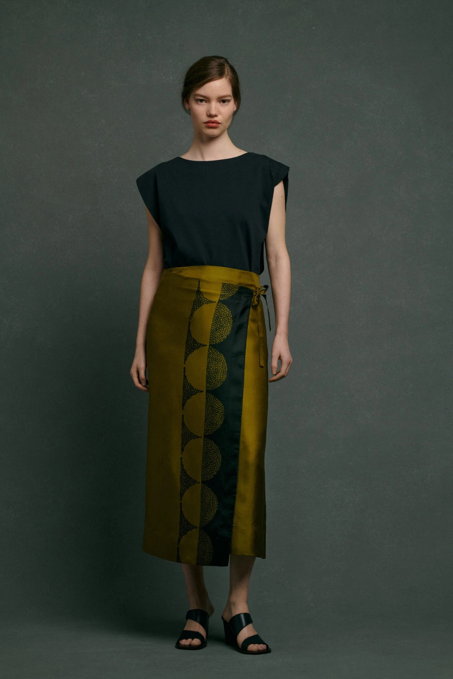 Jupe portefeuille mi-longue en twill de soie imprimé « Pochoir »