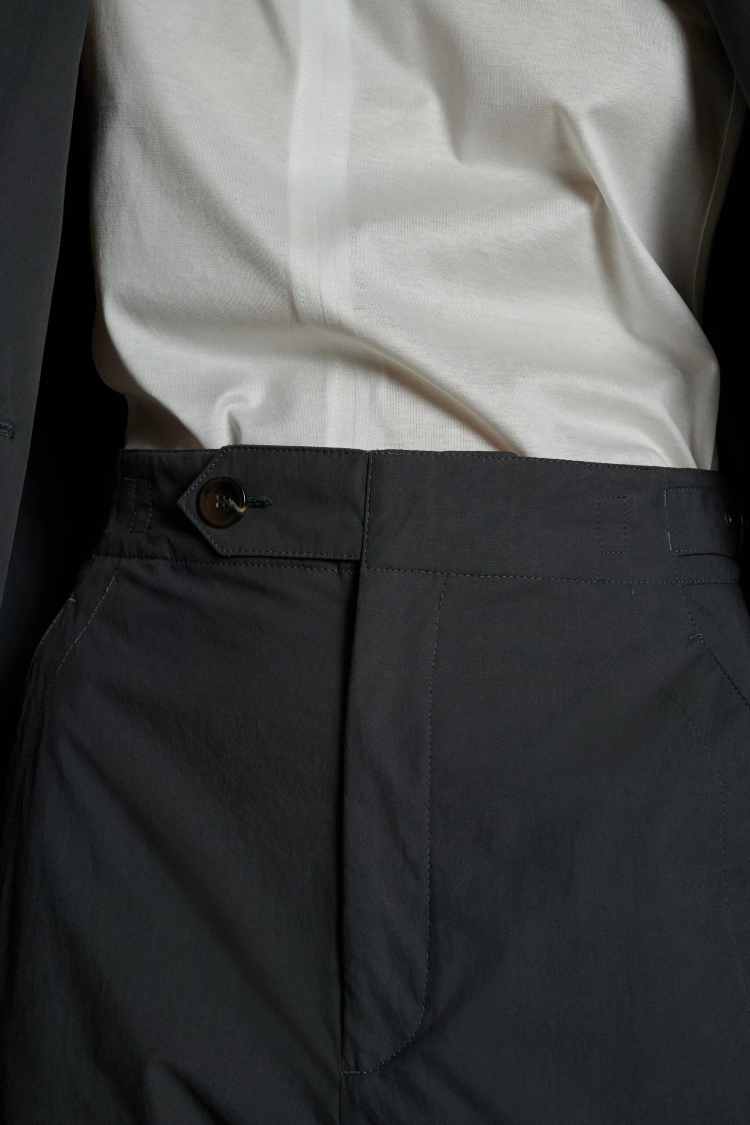 PRESTON est un pantalon en popeline de coton fine et lĂ©gère. Sa taille haute est ajustable grâce des pattes de resserrage boutonnĂ©es. A associer au blazer SEVRES pour un costume d’Ă©tĂ©.