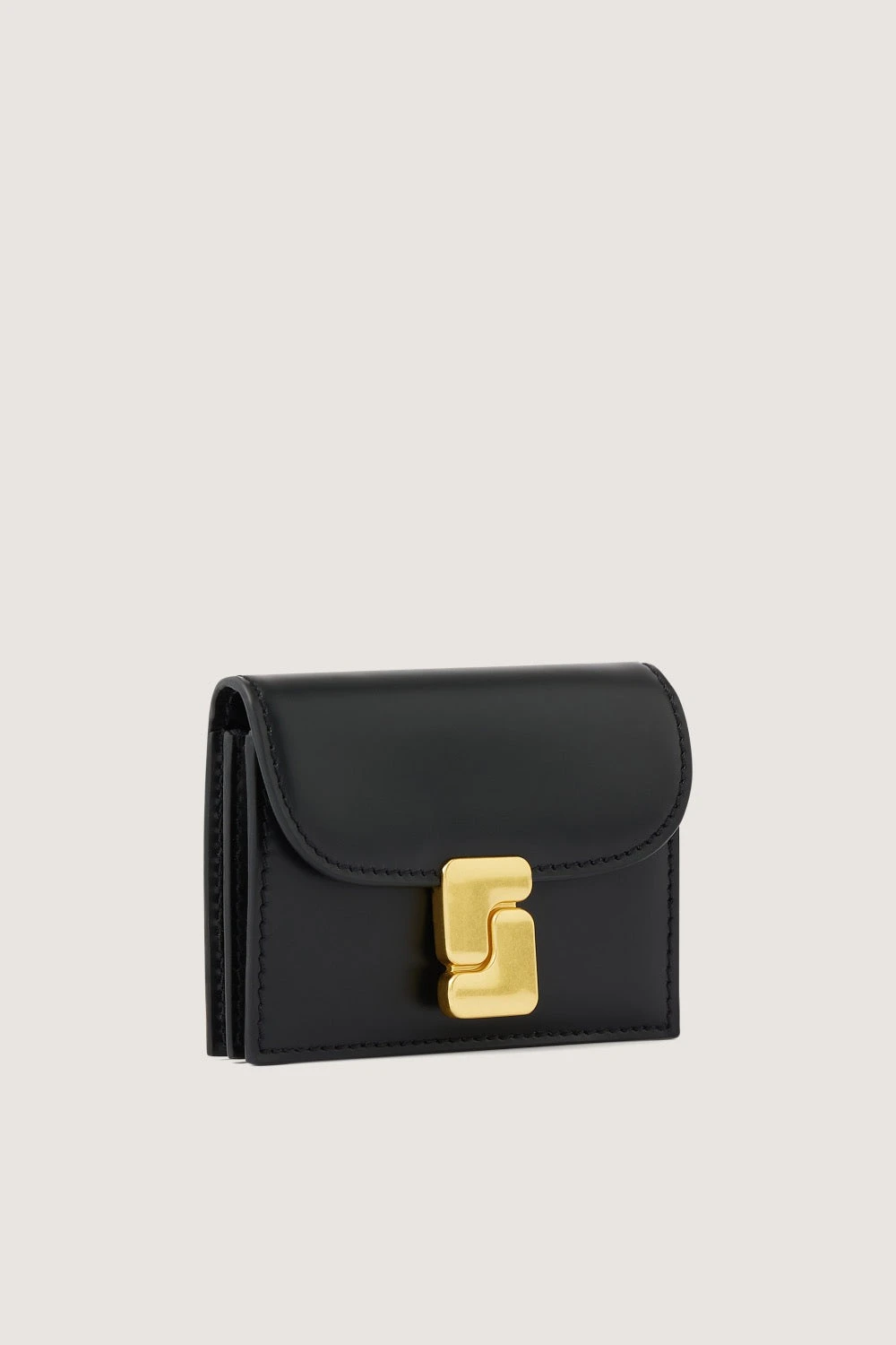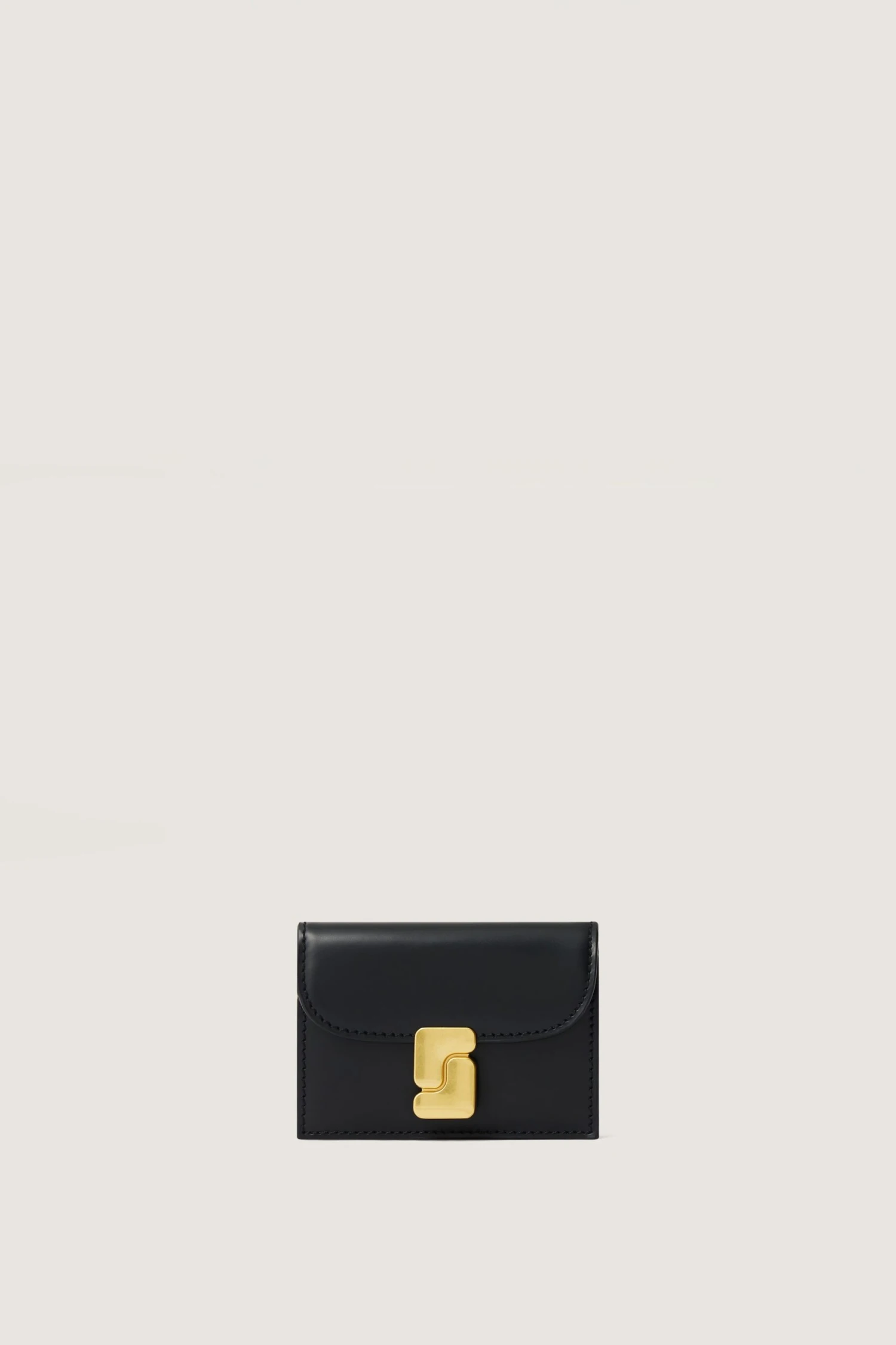 Porte-cartes à rabat monogramme « S » en cuir glacé noir