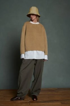 AMEDEE est un pull large en laine Ă©paisse et souple. Les manches coudĂ©es, les pinces au col et les coutures rentrantes renforcent son volume arrondi. En lainage chaud et non doublĂ©, il pourra ĂȘtre portĂ© Ă mĂȘme la peau ou avec une chemise longue dessous pour jouer sur les longueurs et les textures.