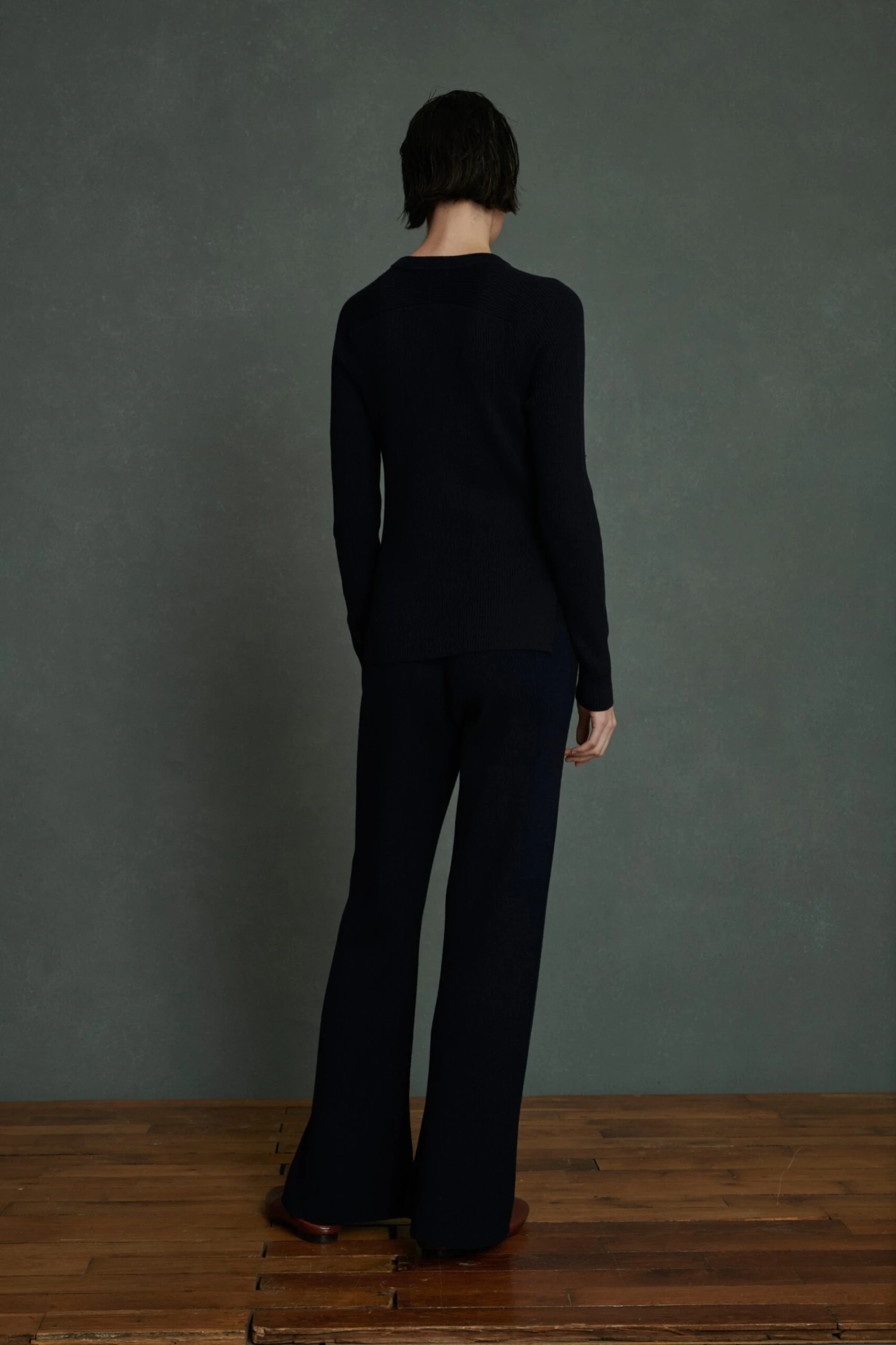 VERONA est un pull col rond en maille cĂŽtelĂ©e extensible Ă la coupe prĂšs du corps. Il peut ĂȘtre portĂ© Ă mĂȘme la peau ou superposĂ© Ă une chemise longue. Il fait partie de notre ligne de tricots brodĂ©s du monogramme « S ». Cette version est en laine mĂ©rinos fine et chaude. Une version d’Ă©tĂ© tricotĂ©e en coton et lin existe Ă©galement.