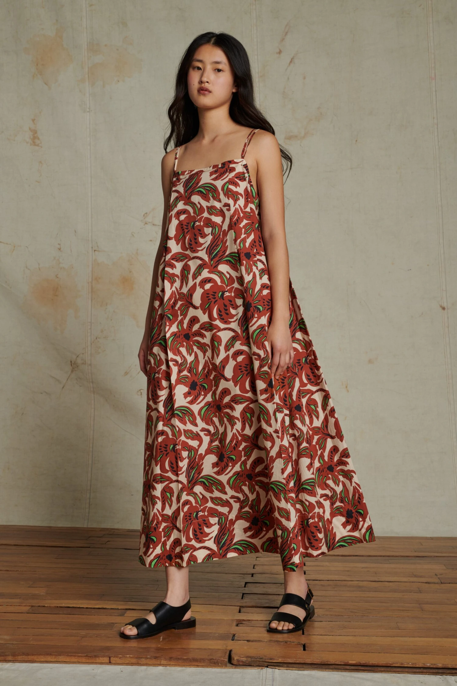 Robe à bretelles en popeline de coton imprimée « Fiori »