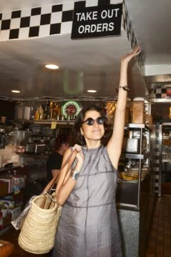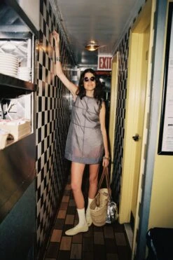 Robe mini ajustĂ©e Ă la taille en organza. Le travail de lignes et les coutures anglaises Ă l’extĂ©rieur du tissu donne au vĂŞtement un aspect structurĂ©.