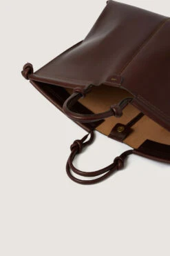 AMALFI est une pièce de maroquinerie exclusive. Ce grand sac cabas est confectionnĂ© dans un cuir lisse d’exception, Ă©pais et brillant, Ă la patine dense. Ses anses sont constituĂ©es de cordons de cuir nouĂ©s Ă la main.