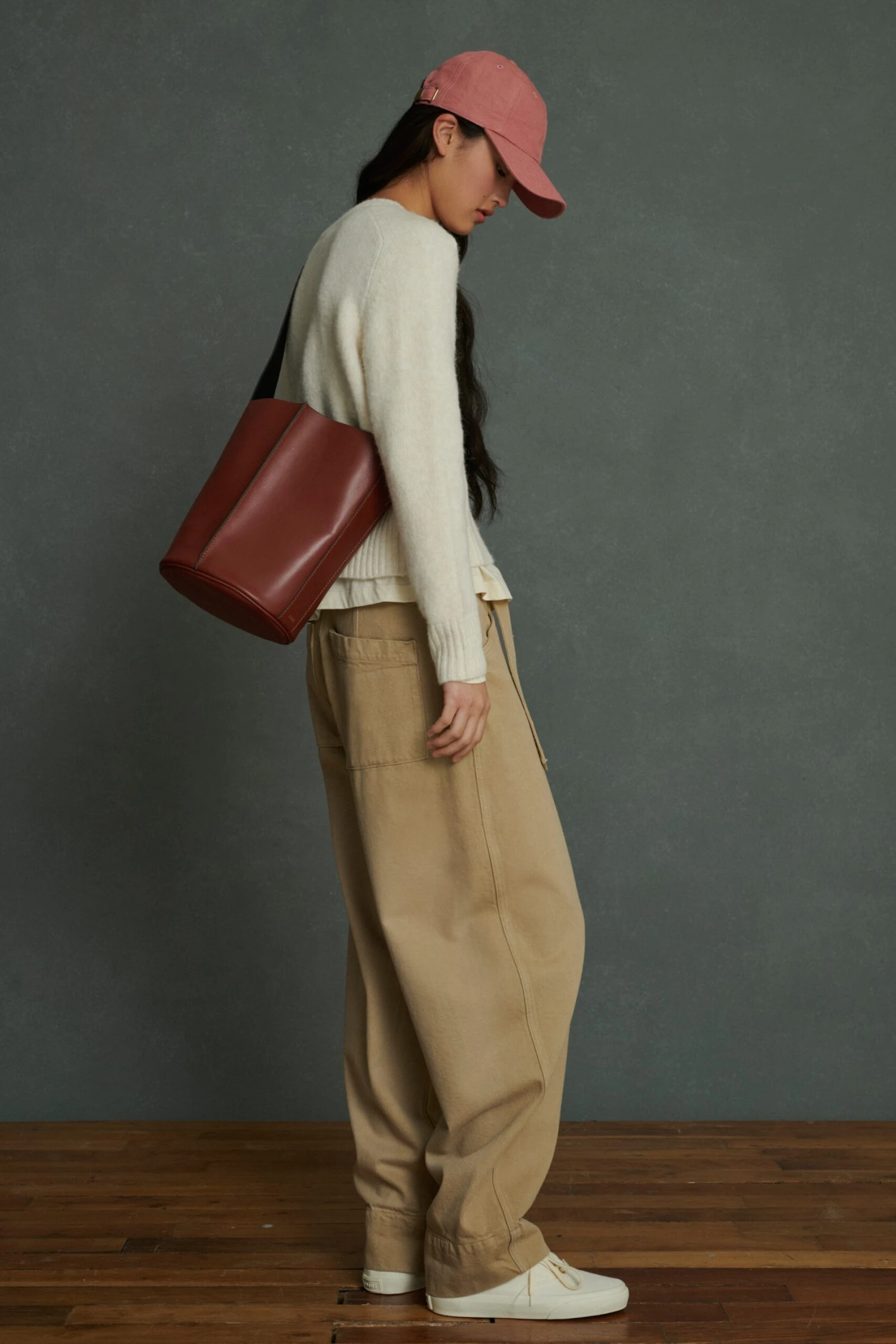 SAUL MINI est un sac seau Ă l’esthĂ©tique minimaliste. Il est pratique et idĂ©al au quotidien grâce Ă son contenant XXL. Son cuir extra souple est maintenu par de larges bandoulières en cuir Ă©pais, ajustables grâce Ă une boucle en mĂ©tal dorĂ©e. Il est en cuir bicolore : extĂ©rieur acajou, intĂ©rieur noir.