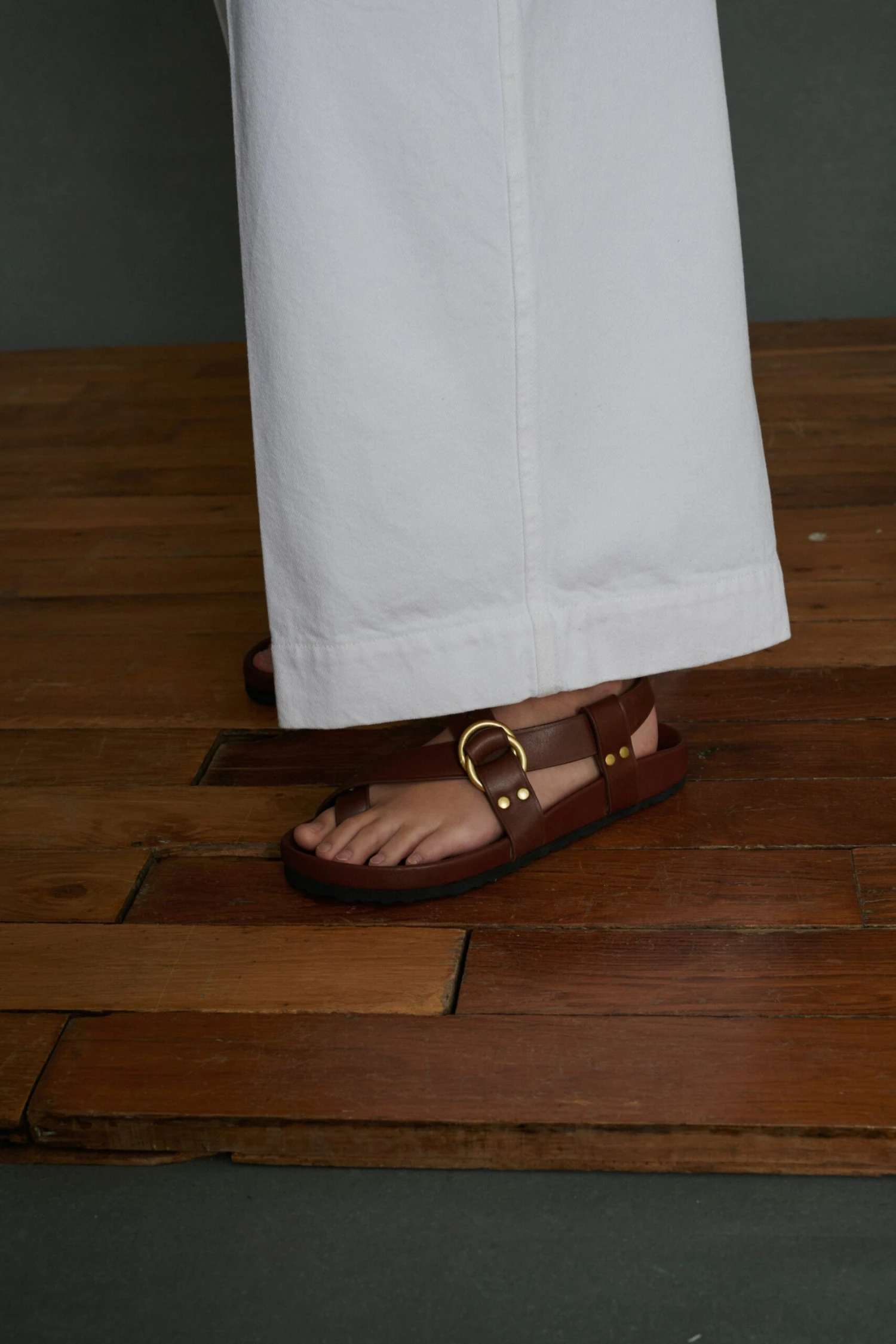 Sandales à semelle épaisse en cuir noisette