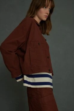 ALICIA est un t-shirt oversize Ă l’encolure V profonde. C’est un jersey qui mĂ©lange des fils de coton et de lin, lui donnant une main authentique et moins « sportwear », contrastant avec son volume rĂ©solument ample et ses manches tombantes.