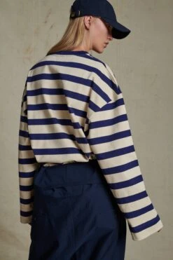 MariniÚre manches longues à logo « soeur » brodé en coton écru et marine